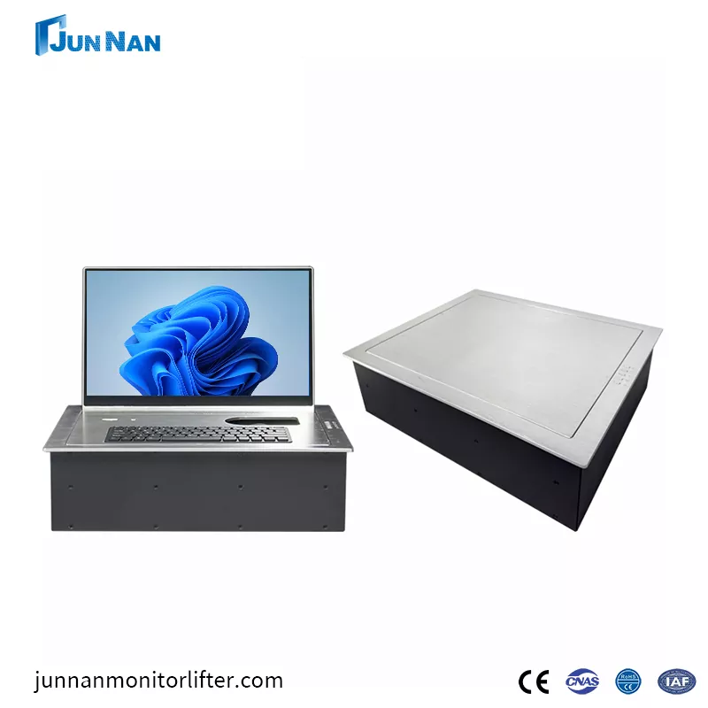 광저우 Junan은 중국의 효율적인 회의 행사를 위한 회의장 플립 스크린 전문 제조업체입니다. 회의장 플립 스크린은 주로 고급 임원 회의 테이블에 사용되며 회의장 플립 스크린에는 고성능 터치 기능이 내장되어 있으며 플립 플롭은 AC 모터로 제어되어 안정적인 작동을 보장합니다. 회의장 플립 스크린은 회의실, 강의실 및 기타 장소에서 사용되는 일종의 장비로, 필요할 때 전기 또는 수동 제어를 통해 모니터를 데스크탑으로 뒤집기 위해 내부 회의 테이블의 모니터를 숨길 수 있습니다. 그런 다음 사용하지 않을 때는 아래로 뒤집어 먼지, 도난 방지 역할을 하고 데스크탑을 부드럽고 아름답게 유지하세요. 전동식 제어 기능을 갖춘 플리퍼는 최상의 시야각 효과를 위해 모니터를 올바른 각도로 쉽게 뒤집을 수 있습니다. 마이크, 원키 플립, 전면 및 후면 조정 기능을 갖추고 있으며 핀치 방지 기능이 있으며 안전하고 걱정할 필요가 없으며 숨겨진 임베디드 설치가 매우 아름답습니다.