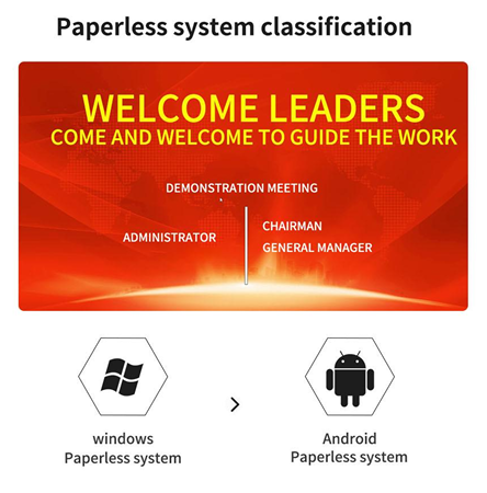 Paperless Office Conference 시스템은 정부 기관, 기업, 기관 및 대기업 회사에 맞게 조정 된 종이없는 컨퍼런스 시스템입니다. 참가자들에게 매우 편리하고 실용적인 회의 플랫폼을 제공하며 회의 비용을 줄이고 회의 효율성을 향상 시키며 회의 보안을 보장하며 회의 품질을 향상시키는 궁극적 인 목표를 가진 새로운 컨퍼런스 모드입니다.