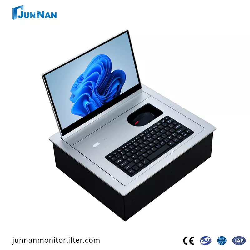 고급 데스크탑 터미널 은폐형 리프트 LCD 플립플롭은 모든 종류의 시나리오에 적합합니다. 우리는 CNC 기계 절단 기술과 레이저 기술, 최신 회의 테이블 데스크탑 플립 디스플레이 기술을 보유하여 제품의 최고 수준을 보장합니다. 플리퍼 제어 소프트웨어는 일반적으로 사용되는 운영 체제와 호환되는 PC 설치를 지원하며 통합 제어가 가능하며 모든 그룹 제어 리프터 상승, 일시 정지, 하강이 가능합니다. 그리고 우리 장비는 CCC, CE 인증서, ROHS, ISO 인증과 같은 다양한 인증서 인증을 보유하고 있으며 제품은 안전하고 고품질이며 수출 자격을 갖추고 있으며 직접 공장 가격 할인을 받고 자체 공장을 보유하고 있으며 많은 기간 동안 운영해 왔습니다. 연령.
